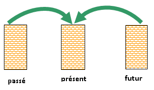à un point B (Présent), situé entre A (Passé) et C (Avenir).